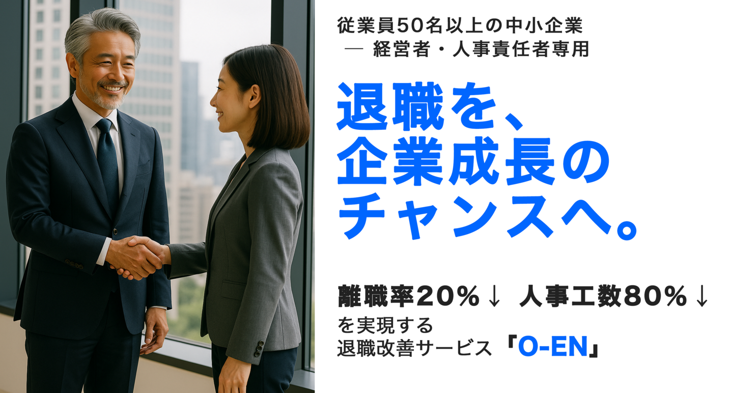A. O-ENは企業側の支援サービスであり、辞めさせるのではなく“第三者としての対応”を通じてより良い辞め方・時には残留の選択肢も提供します。